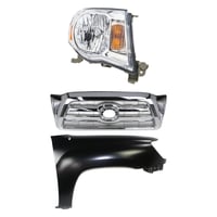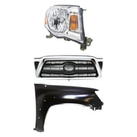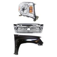 Grille Kit for 2016-2017 Toyota Tacoma, Chrome Shell and Insert, 3-Piece Set with Fender and Headlight Replacement