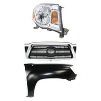Grille for 2019-2021 Toyota Tacoma, 3-Piece Kit with Fender and Headlight Replacement