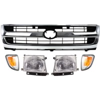 Grille for Toyota Tacoma 1997-2000, 5-Piece Kit with Corner Lights and Headlights, Replacement