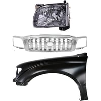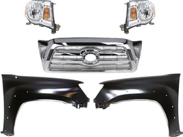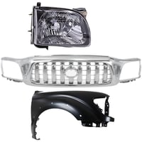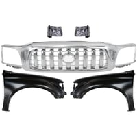 Chrome Shell Grille with Dark Silver Painted Insert for 1997 Toyota Tacoma, 5-Piece Kit including Fenders and Headlights, Replacement