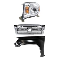 3-Piece Kit Grille for 2016-2017 Toyota Tacoma - Chrome Shell with Painted Black Insert, with Fender and Headlight Replacement