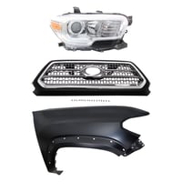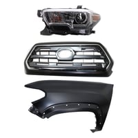 Grille for 2019-2021 Toyota Tacoma, 3-Piece Kit with Fender and Headlight Replacement