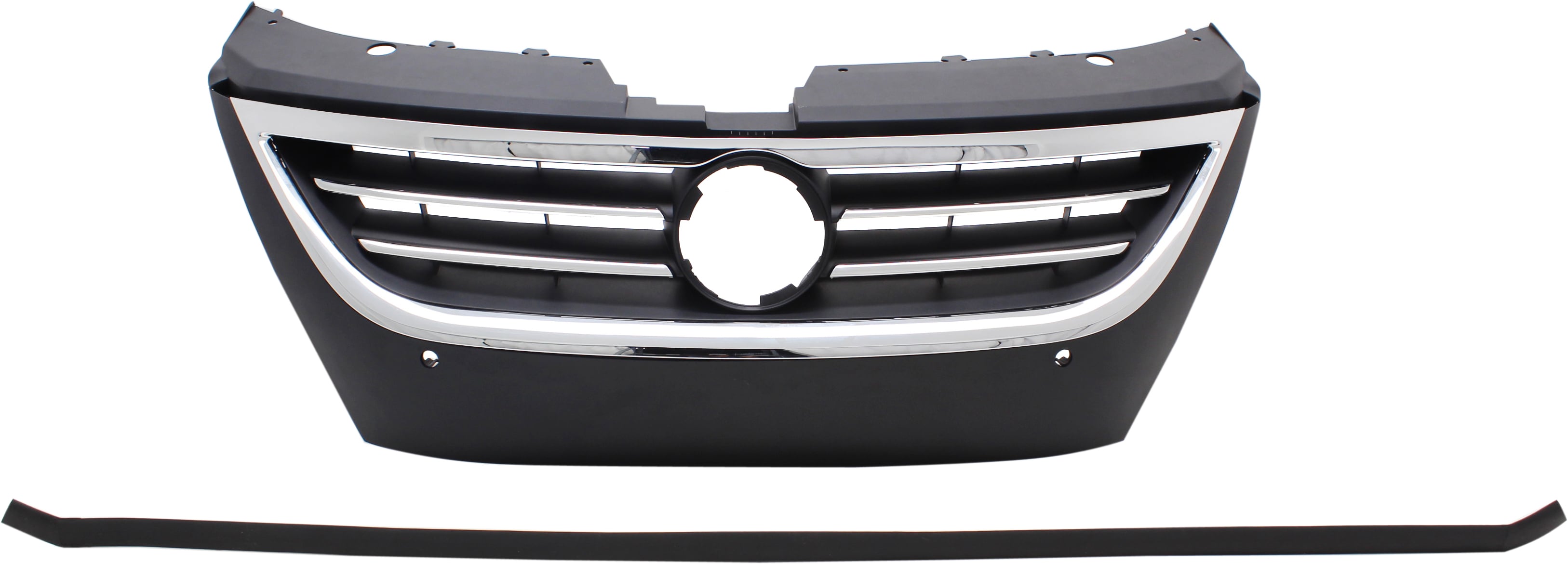 Primed (Ready to Paint) Black Shell and Insert Grille for Volkswagen CC 2009-2012/Passat CC 2009-2010, with Chrome Molding, without Distance Sensor Hole, Replacement