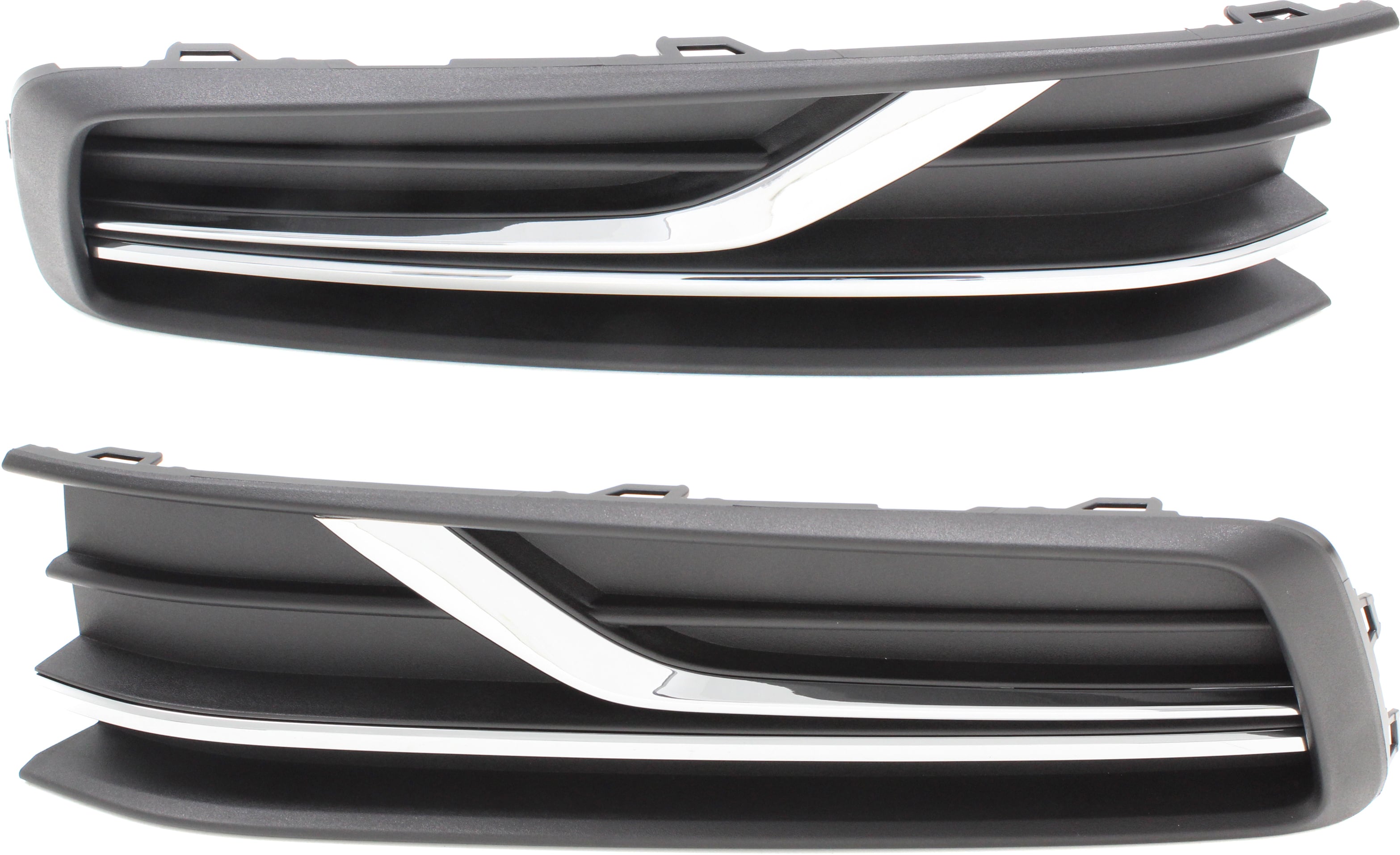 Front Fog Light Molding Pair/Set for 2016-2019 Volkswagen Passat (Right Passenger & Left Driver), Textured Black Outer Grille, with Block Heater, Fits 19-Wolfsburg Models (Excludes GT/R-Line), for Canada/USA Built Vehicle Replacement