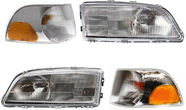 Headlight Assembly Kit for Volvo S70/V70 1998-2000, C70 1998-2002, Right (Passenger) and Left (Driver), Halogen, 4-Piece with Corner Lights, Replacement